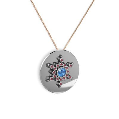 Akuamarin ve kök yakut 14 ayar beyaz altın kolye (40 cm rose altın rolo zincir)