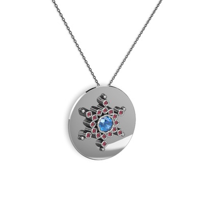 Akuamarin ve kök yakut 18 ayar beyaz altın kolye (40 cm gümüş rolo zincir)