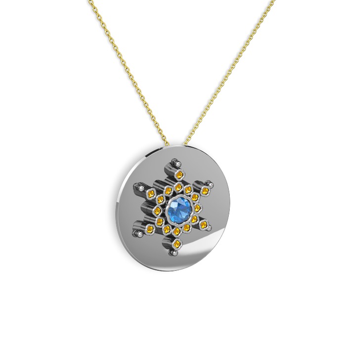 Akuamarin ve sitrin 925 ayar gümüş kolye (40 cm altın rolo zincir)