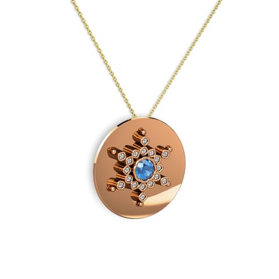 Akuamarin ve swarovski 8 ayar rose altın kolye (40 cm altın rolo zincir)