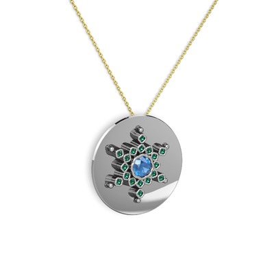 Akuamarin ve yeşil kuvars 18 ayar beyaz altın kolye (40 cm gümüş rolo zincir)