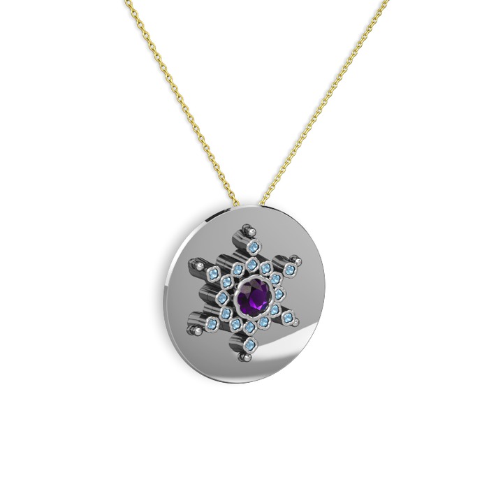 Ametist ve akuamarin 18 ayar beyaz altın kolye (40 cm gümüş rolo zincir)