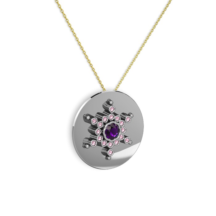 Ametist ve pembe kuvars 8 ayar beyaz altın kolye (40 cm altın rolo zincir)