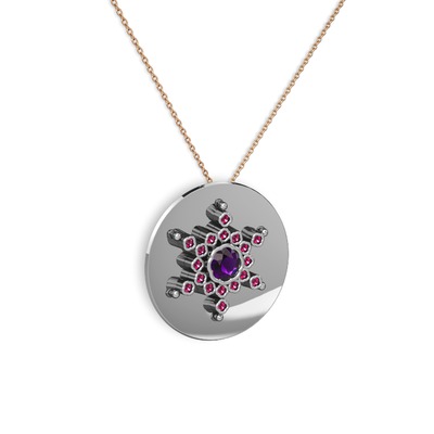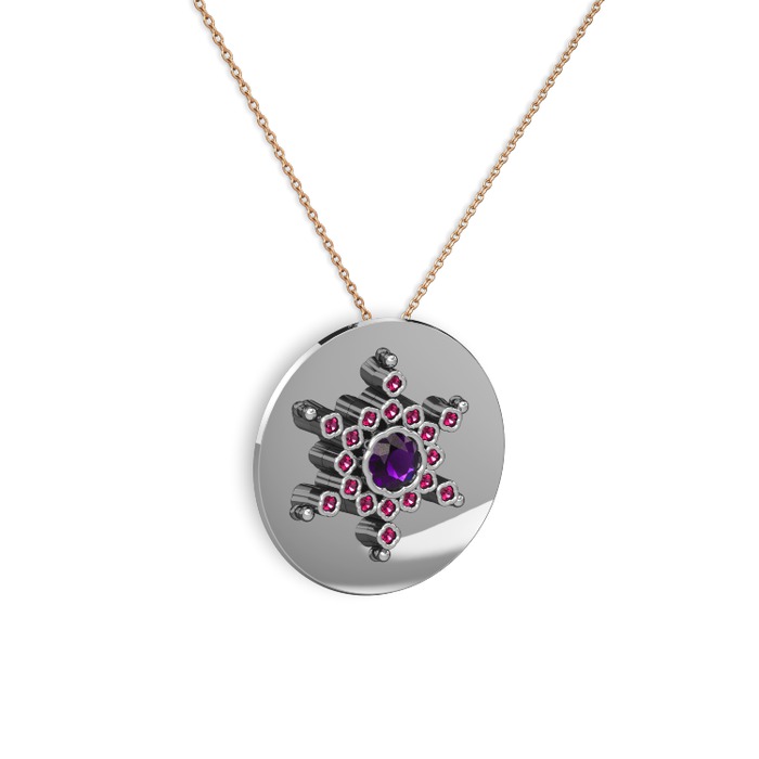 Ametist ve rodolit garnet 18 ayar beyaz altın kolye (40 cm rose altın rolo zincir)