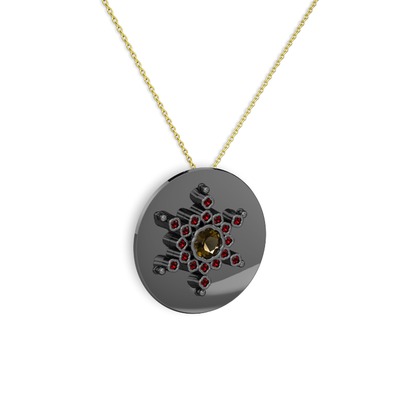 Dumanlı kuvars ve garnet 925 ayar siyah rodyum kaplama gümüş kolye (40 cm gümüş rolo zincir)