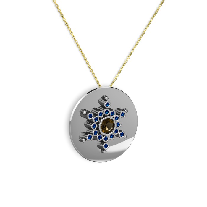 Dumanlı kuvars ve lab safir 8 ayar beyaz altın kolye (40 cm altın rolo zincir)
