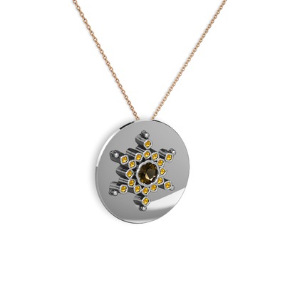 Dumanlı kuvars ve sitrin 18 ayar beyaz altın kolye (40 cm rose altın rolo zincir)