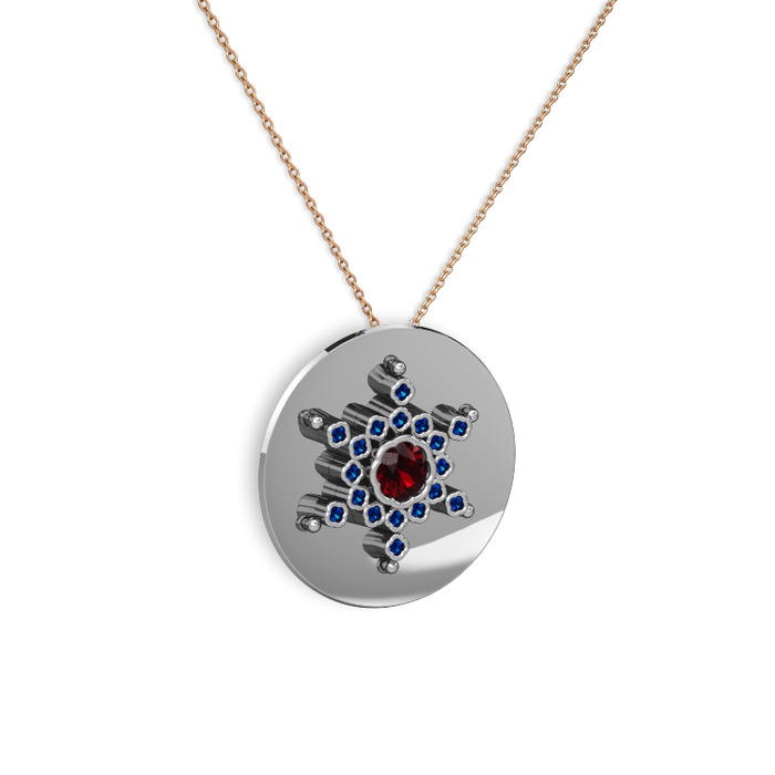 Garnet ve lab safir 14 ayar beyaz altın kolye (40 cm gümüş rolo zincir)