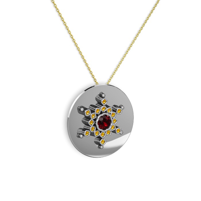 Garnet ve sitrin 8 ayar beyaz altın kolye (40 cm altın rolo zincir)