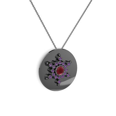 Kök yakut ve ametist 925 ayar siyah rodyum kaplama gümüş kolye (40 cm gümüş rolo zincir)