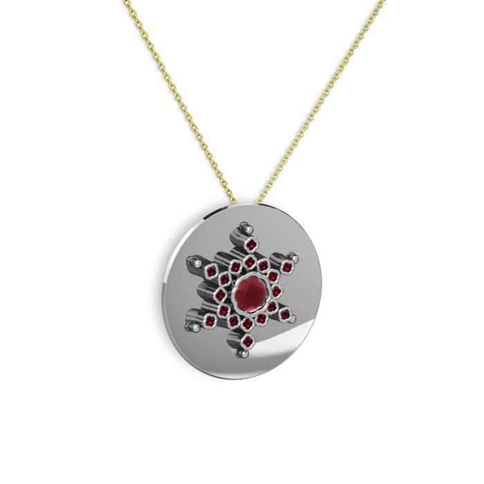 Kök yakut ve garnet 18 ayar beyaz altın kolye (40 cm altın rolo zincir)