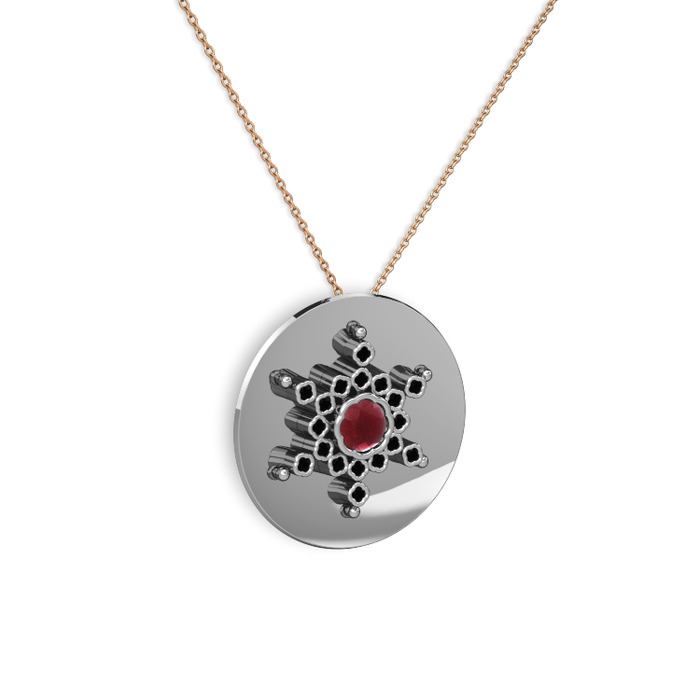 Kök yakut ve siyah zirkon 14 ayar beyaz altın kolye (40 cm rose altın rolo zincir)