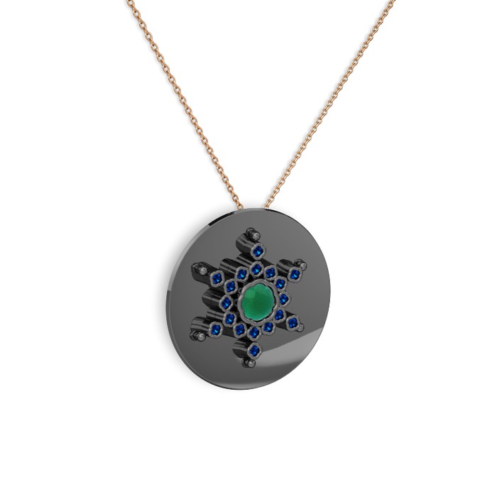 Kök zümrüt ve lab safir 925 ayar siyah rodyum kaplama gümüş kolye (40 cm rose altın rolo zincir)