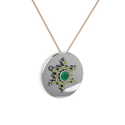 Kök zümrüt ve peridot 8 ayar beyaz altın kolye (40 cm gümüş rolo zincir)