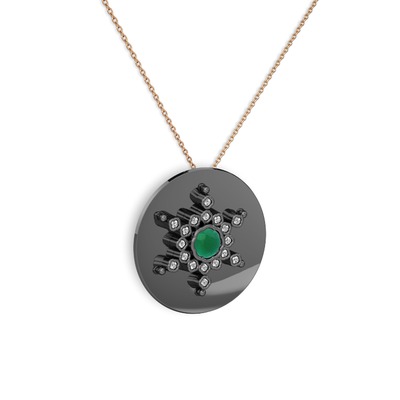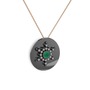 Kök zümrüt ve swarovski 925 ayar siyah rodyum kaplama gümüş kolye (40 cm rose altın rolo zincir)