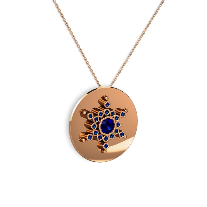Lab safir 8 ayar rose altın kolye (40 cm rose altın rolo zincir)