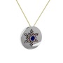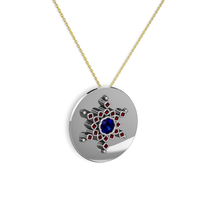 Lab safir ve garnet 14 ayar beyaz altın kolye (40 cm altın rolo zincir)