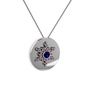 Lab safir ve kök yakut 18 ayar beyaz altın kolye (40 cm gümüş rolo zincir)