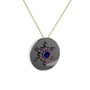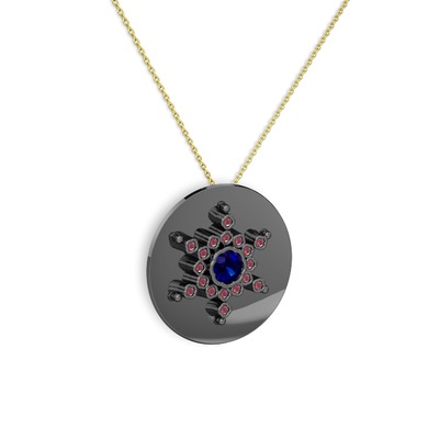 Lab safir ve kök yakut 925 ayar siyah rodyum kaplama gümüş kolye (40 cm altın rolo zincir)