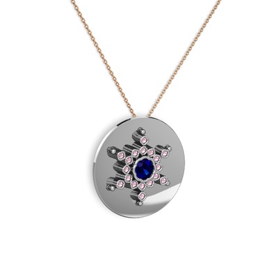 Lab safir ve pembe kuvars 8 ayar beyaz altın kolye (40 cm rose altın rolo zincir)