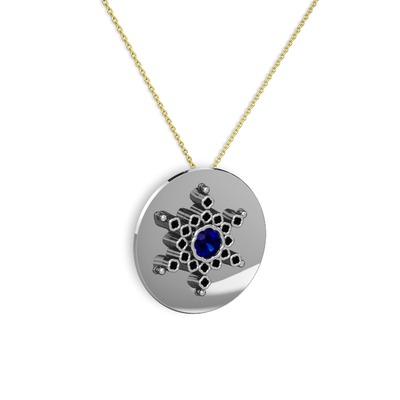 Lab safir ve siyah zirkon 14 ayar beyaz altın kolye (40 cm gümüş rolo zincir)