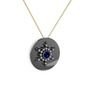 Lab safir ve swarovski 925 ayar siyah rodyum kaplama gümüş kolye (40 cm altın rolo zincir)