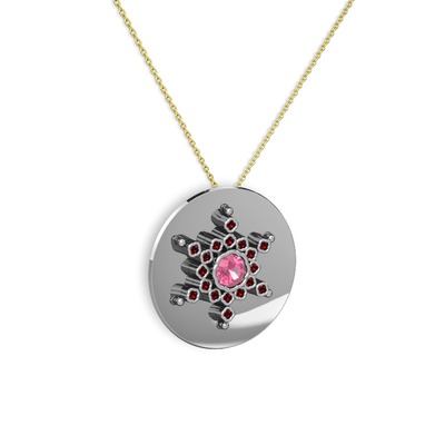 Pembe kuvars ve garnet 18 ayar beyaz altın kolye (40 cm gümüş rolo zincir)
