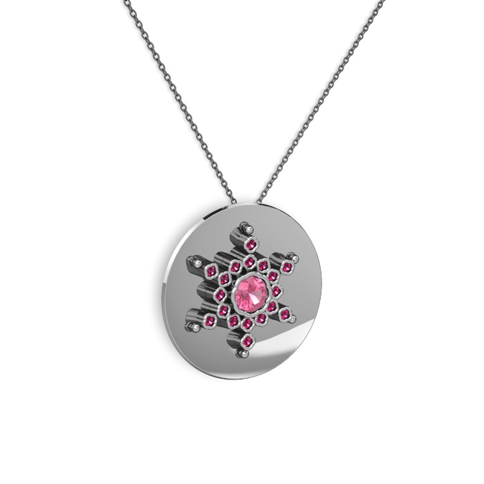 Pembe kuvars ve rodolit garnet 18 ayar beyaz altın kolye (40 cm gümüş rolo zincir)