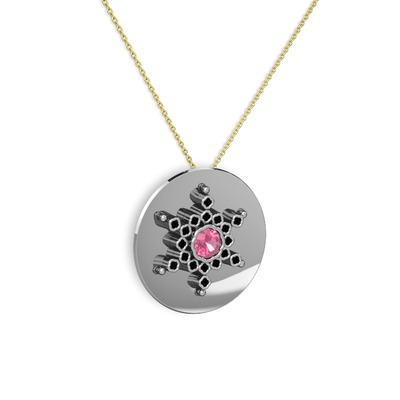 Pembe kuvars ve siyah zirkon 8 ayar beyaz altın kolye (40 cm altın rolo zincir)
