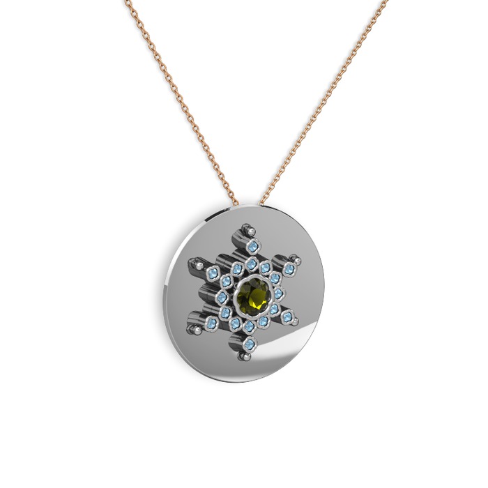 Peridot ve akuamarin 8 ayar beyaz altın kolye (40 cm gümüş rolo zincir)