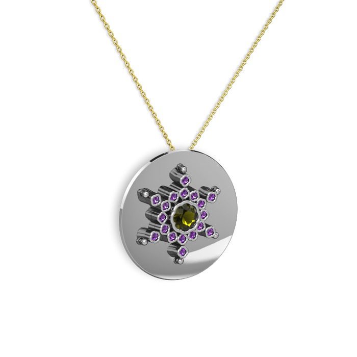 Peridot ve ametist 18 ayar beyaz altın kolye (40 cm altın rolo zincir)