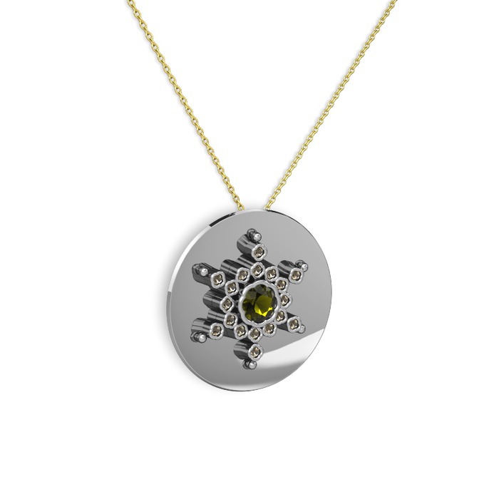 Peridot ve dumanlı kuvars 8 ayar beyaz altın kolye (40 cm altın rolo zincir)