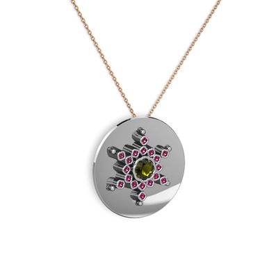 Peridot ve rodolit garnet 18 ayar beyaz altın kolye (40 cm gümüş rolo zincir)