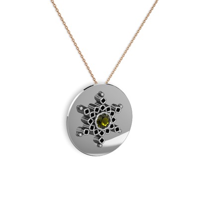 Peridot ve siyah zirkon 925 ayar gümüş kolye (40 cm rose altın rolo zincir)