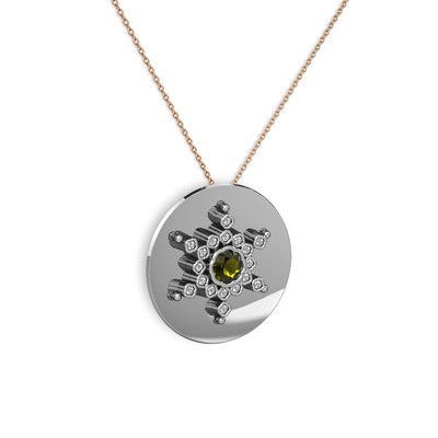 Peridot ve swarovski 14 ayar beyaz altın kolye (40 cm gümüş rolo zincir)