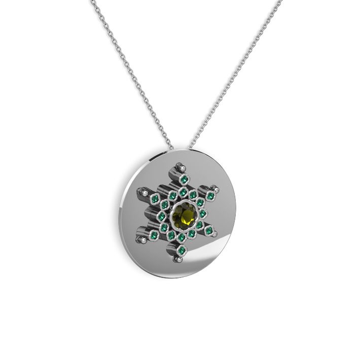 Peridot ve yeşil kuvars 925 ayar gümüş kolye (40 cm beyaz altın rolo zincir)