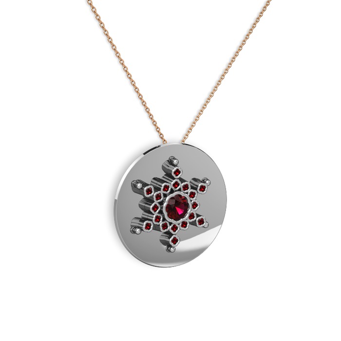 Rodolit garnet ve garnet 925 ayar gümüş kolye (40 cm rose altın rolo zincir)
