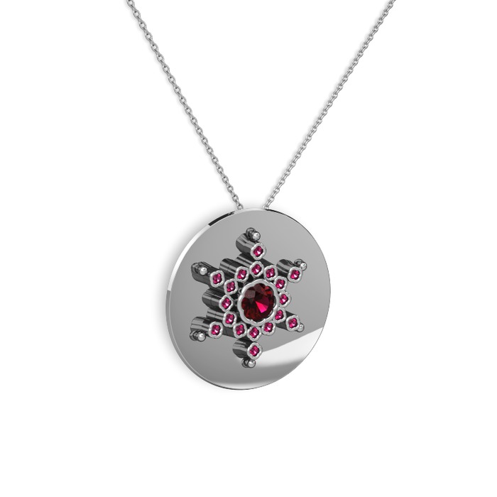 Rodolit garnet 925 ayar gümüş kolye (40 cm beyaz altın rolo zincir)