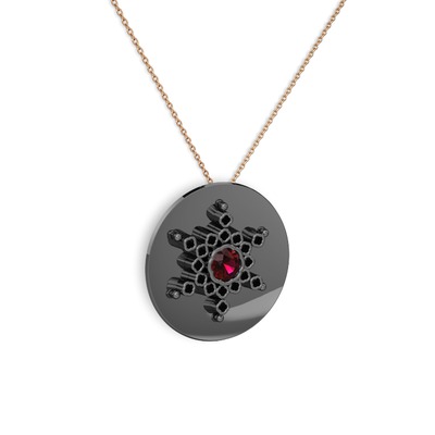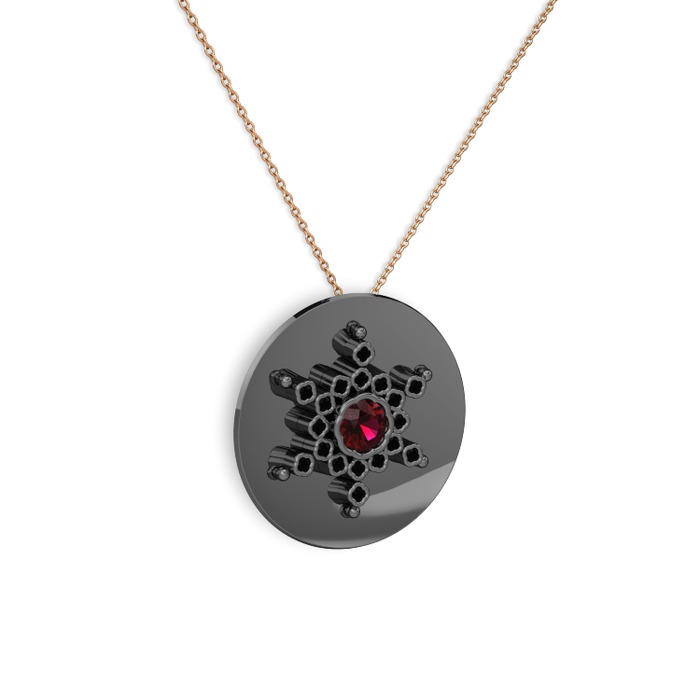 Rodolit garnet ve siyah zirkon 925 ayar siyah rodyum kaplama gümüş kolye (40 cm rose altın rolo zincir)
