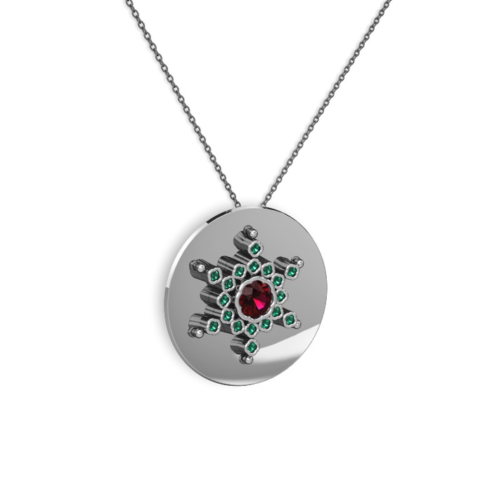 Rodolit garnet ve yeşil kuvars 18 ayar beyaz altın kolye (40 cm gümüş rolo zincir)