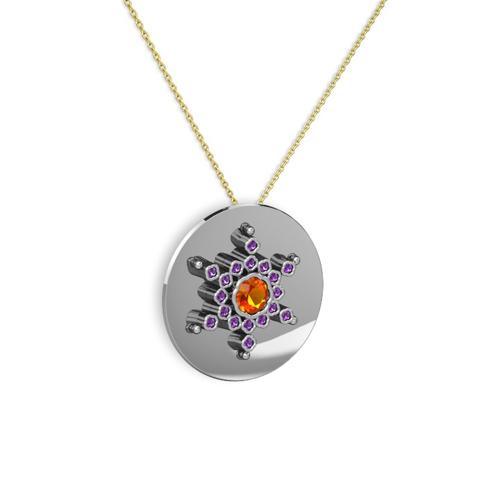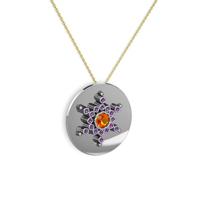Sitrin ve ametist 18 ayar beyaz altın kolye (40 cm altın rolo zincir)