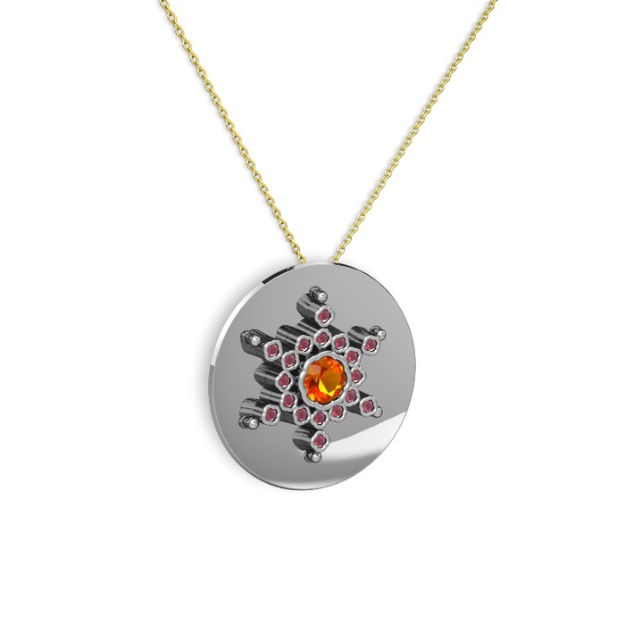 Sitrin ve kök yakut 14 ayar beyaz altın kolye (40 cm altın rolo zincir)