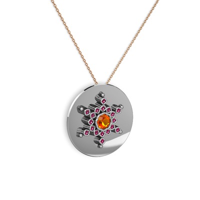Sitrin ve rodolit garnet 8 ayar beyaz altın kolye (40 cm rose altın rolo zincir)