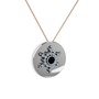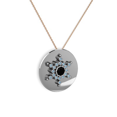Siyah zirkon ve akuamarin 18 ayar beyaz altın kolye (40 cm rose altın rolo zincir)