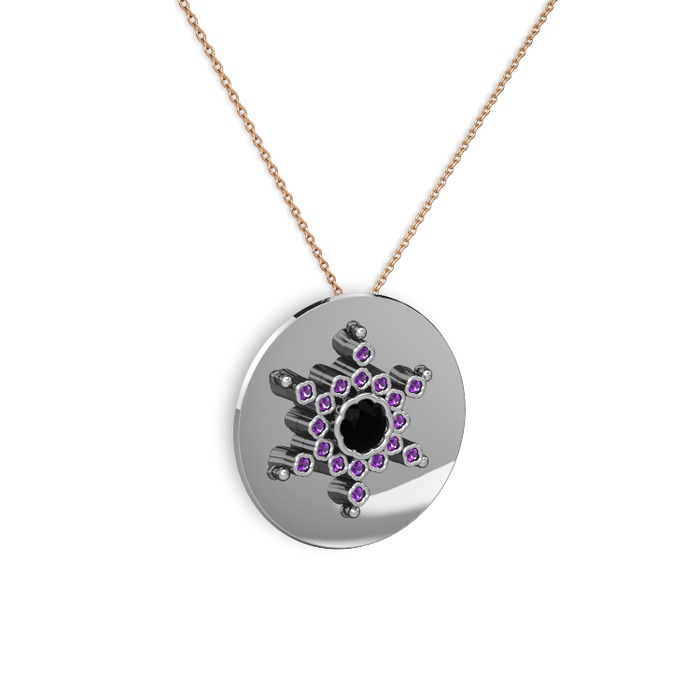 Siyah zirkon ve ametist 14 ayar beyaz altın kolye (40 cm rose altın rolo zincir)