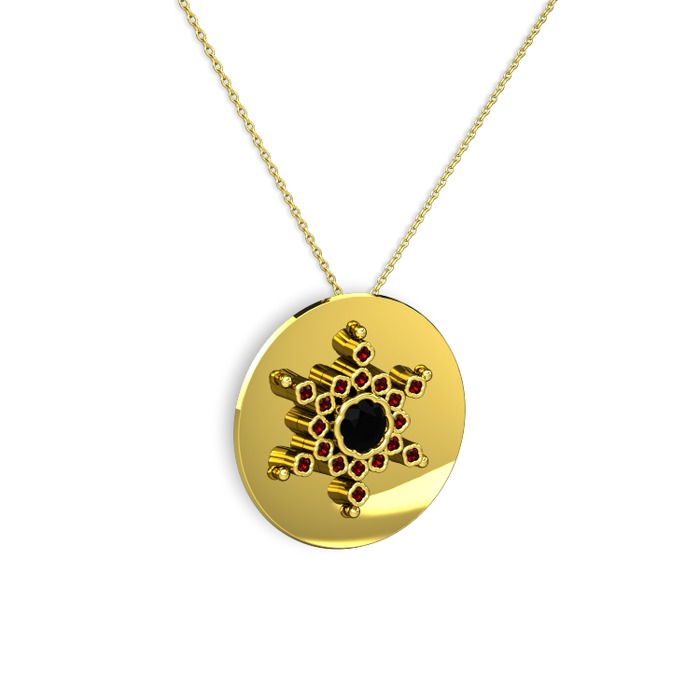 Siyah zirkon ve garnet 8 ayar altın kolye (40 cm altın rolo zincir)