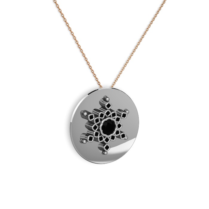 Siyah zirkon 925 ayar gümüş kolye (40 cm rose altın rolo zincir)