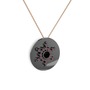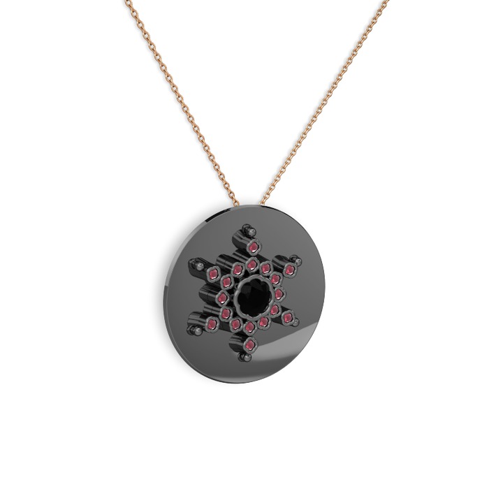 Siyah zirkon ve kök yakut 925 ayar siyah rodyum kaplama gümüş kolye (40 cm rose altın rolo zincir)