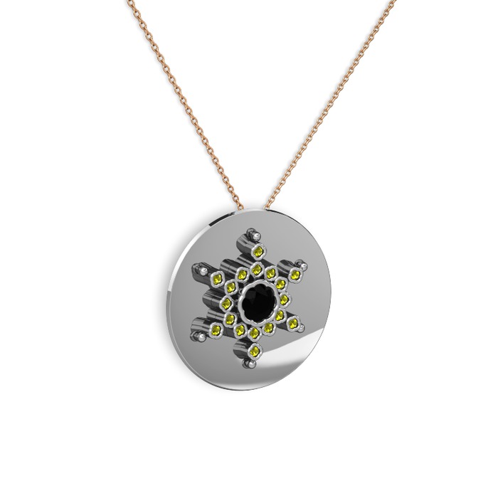 Siyah zirkon ve peridot 18 ayar beyaz altın kolye (40 cm gümüş rolo zincir)