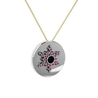 Siyah zirkon ve rodolit garnet 8 ayar beyaz altın kolye (40 cm altın rolo zincir)